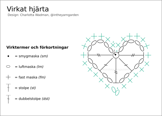 Snart är det Alla Hjärtans dag så jag passar på att bjuda på ett mönster för virkade hjärtan. Använd dem som dekorationer på ett kort, till en girlang, sätt fast några i en blombukett eller så virkar du några bara för att det är skoj 🙂