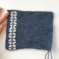 Du har nu en virkad rektangel. Innan rektangeln virkas ihop till en handledsvärmare så dekoreras utsidan med korsstygn.