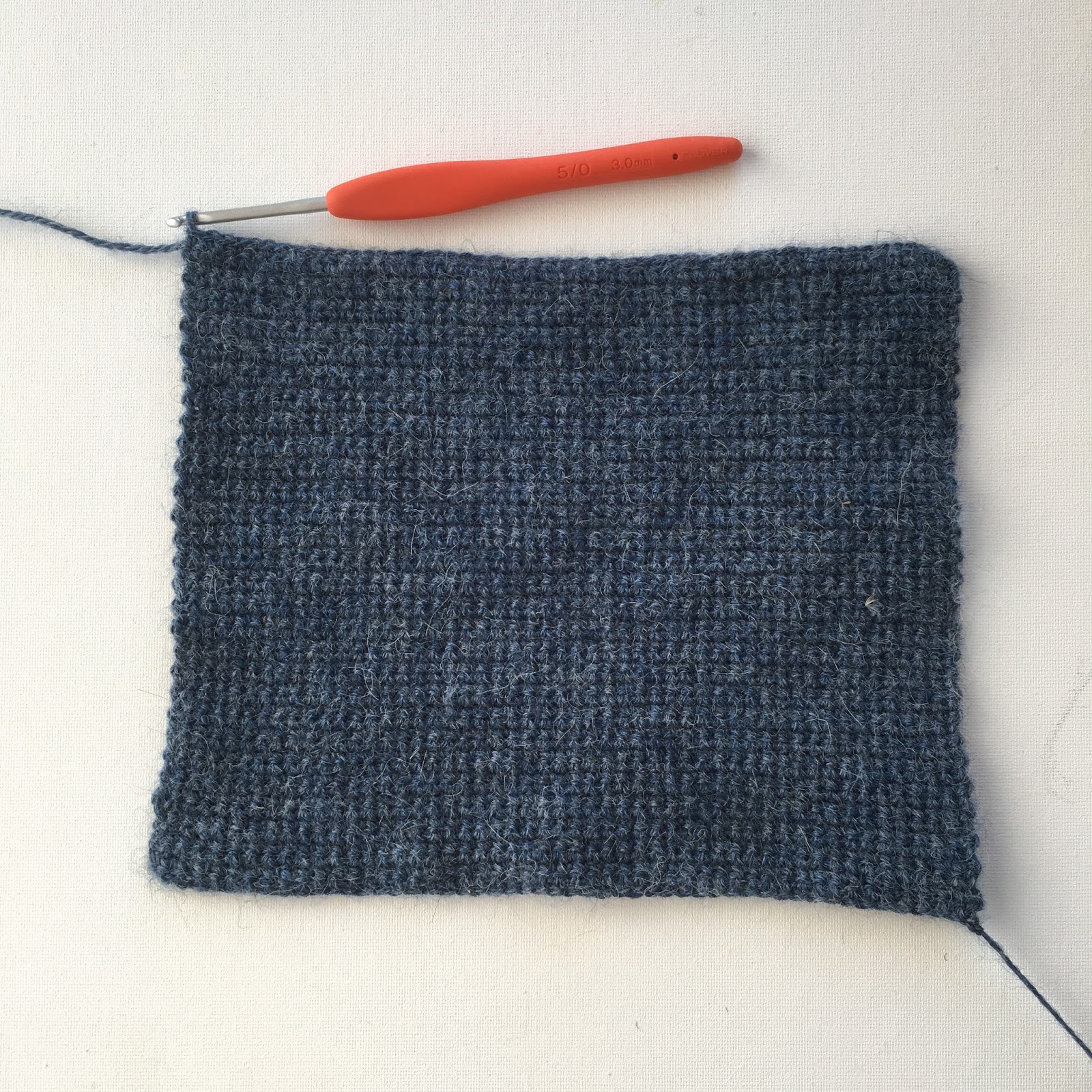 När man virkar fasta maskor så bildas ett rutmönster som det går alldeles utmärkt att brodera korsstygn på. Det kan vara lite trixigt att hitta rätt till en början men övning ger färdighet 😉
