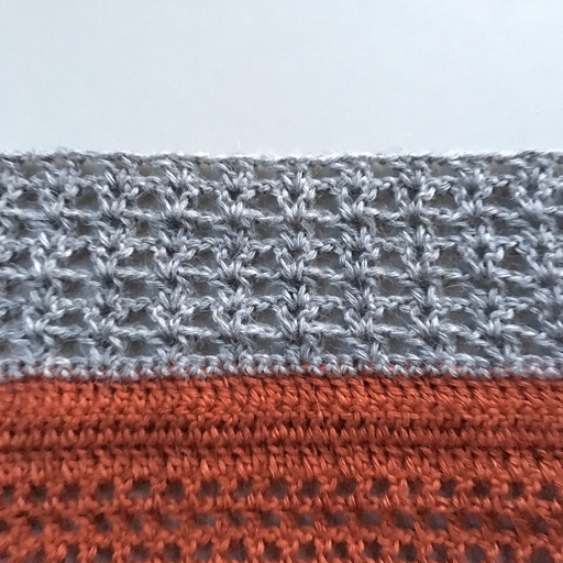 ch 1, sk 2 st, (1 vst, ch 2, 1 vst) in ch-2. *ch 1, 1 vst in next vst* repeat until last vst on row. dc2tog.