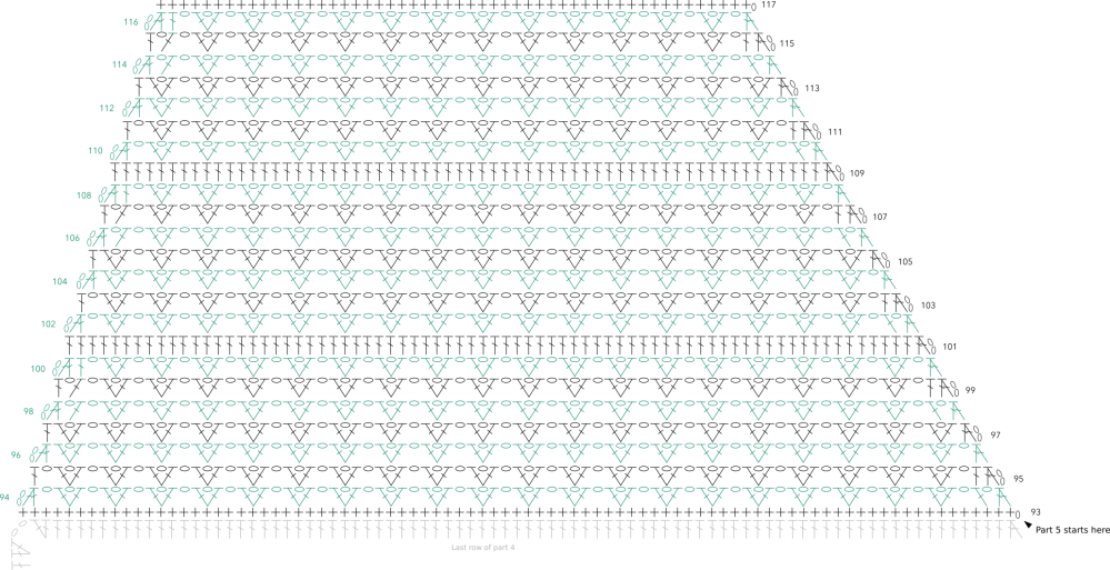 Row 110-116: Repeat row 94 -100