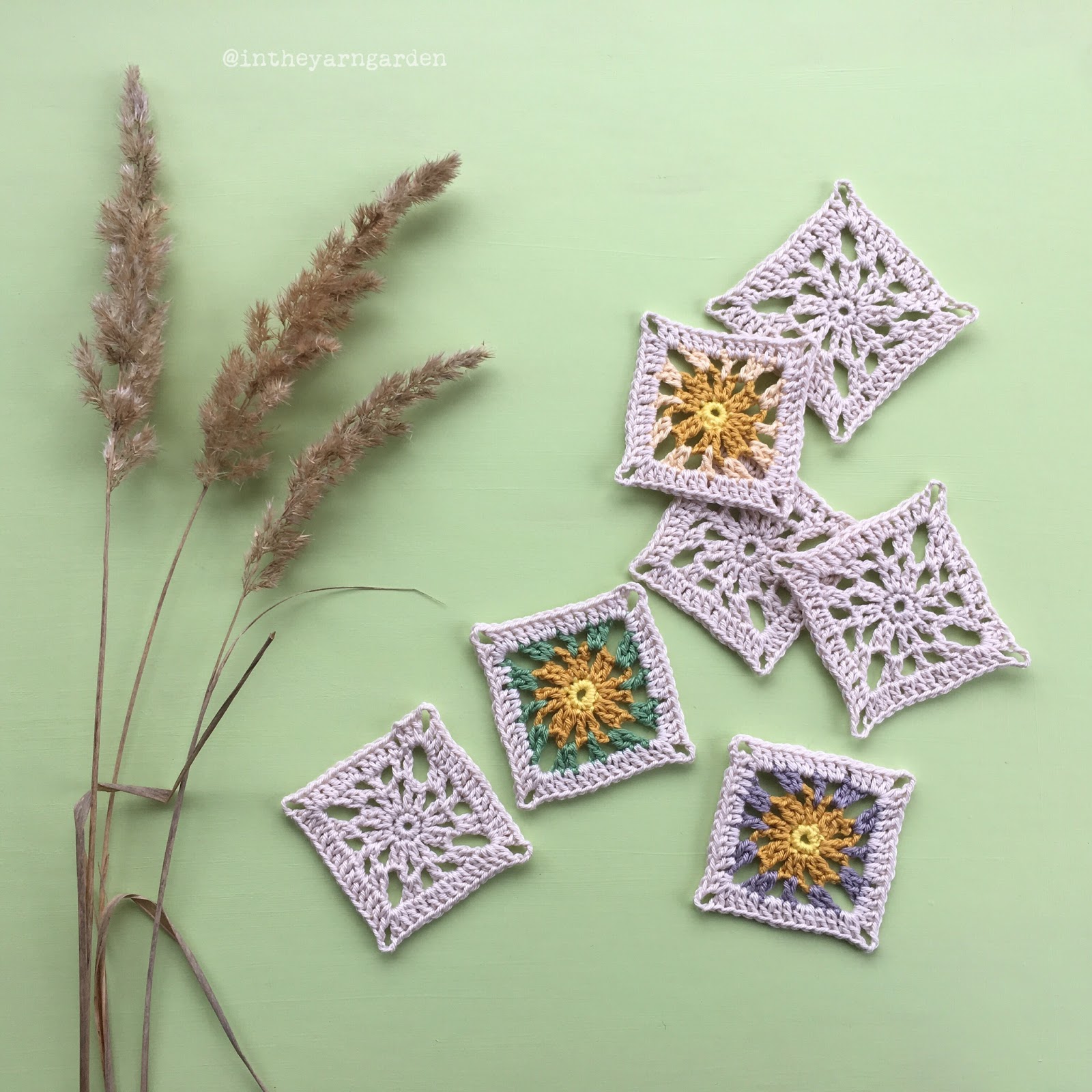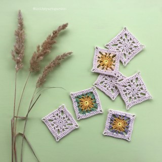 3 lm (räknas som 1 st), 1 st i samma m som du startade lm-kedjan från, (3 lm, 2 st i nästa m) upprepa 7 gånger, 3 lm. Avsluta varvet med en sm i 3:e lm. (8 par med 2 st i varje, 8 stycken 3-lmb)Varv 3: