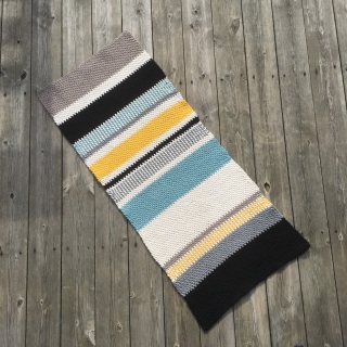 It is of course possible to vary the colors and stripe pattern on this table runner. To make parts with thin stripes in 2 colors you need to make each other round with each of the 2 colors. Follow the color code below if you’d want exactly the same colors and stipes as me.